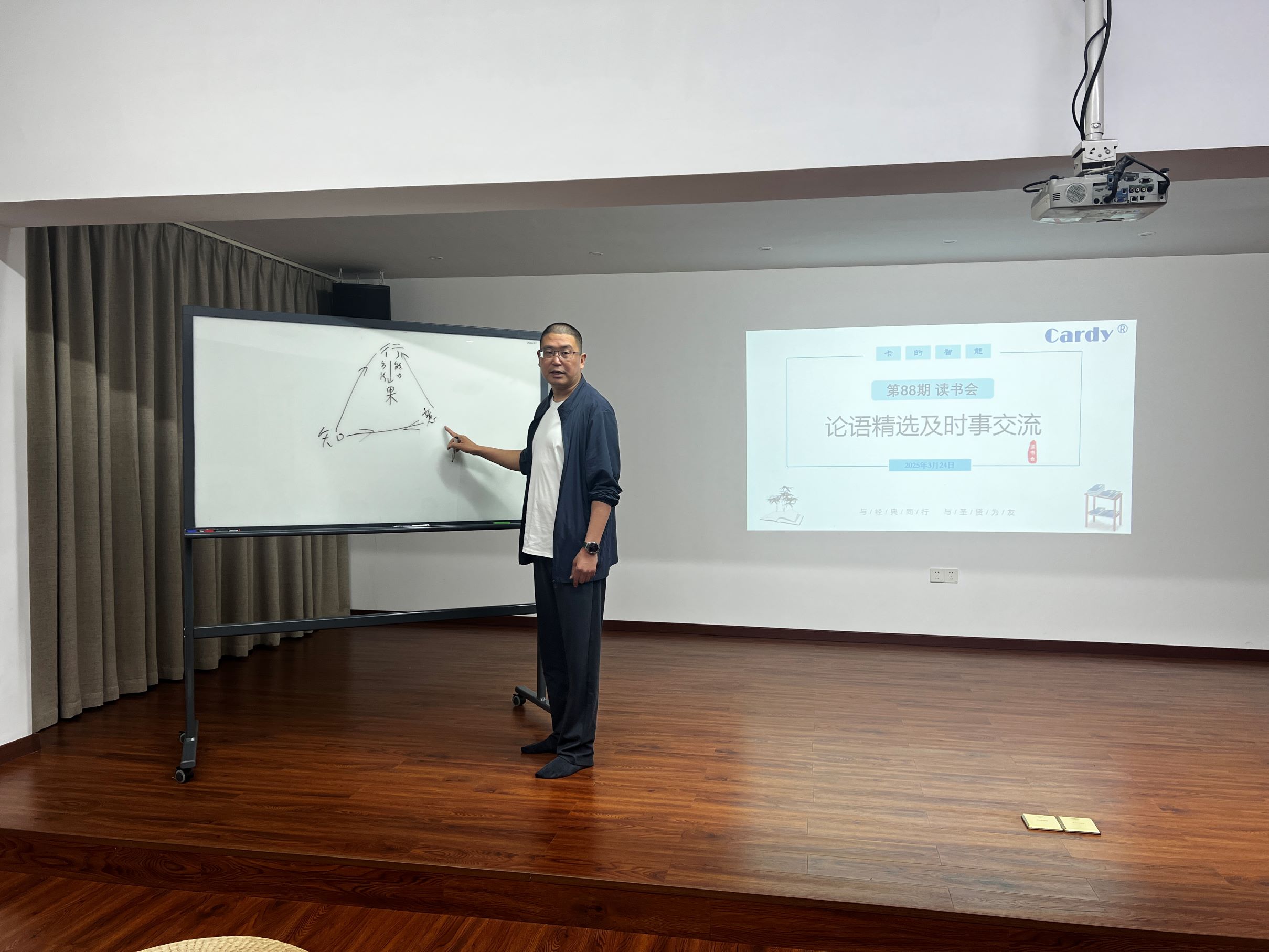 发布时间:2025-03-25读经典古籍,悟千年智慧;学实用工具,助高效前行。3月24日,卡的智能第88期读书会在圣学书院如期举行,公司同事近20人参加,开启了一场“文能诵经典,武能提效率”的跨界之旅。从《论语》中的修身悟道到提效工具的高效实践,传统与现代在此交融,为职场人注入“内外兼修”的能量。