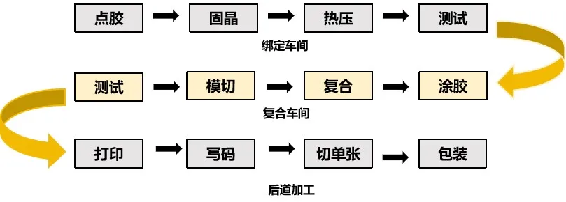 电子标签的生产工艺主要由三部分构成;绑定封装、复合模切、后道加工环节,通过相关的硬件设备进行生产制造,待产品完成生产后,对产品进行张贴标识,装防静电袋,抽真空,装箱。以避免产品暴露在空气中,并达到远距离运输的条件。